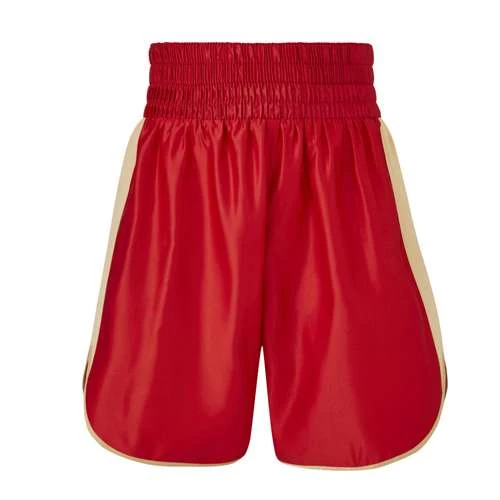 Traditional satin shorts trimmed in red with a modern curved style. Our manufacture use only the highest quality materials in all our shorts, with them all being made right here in England.