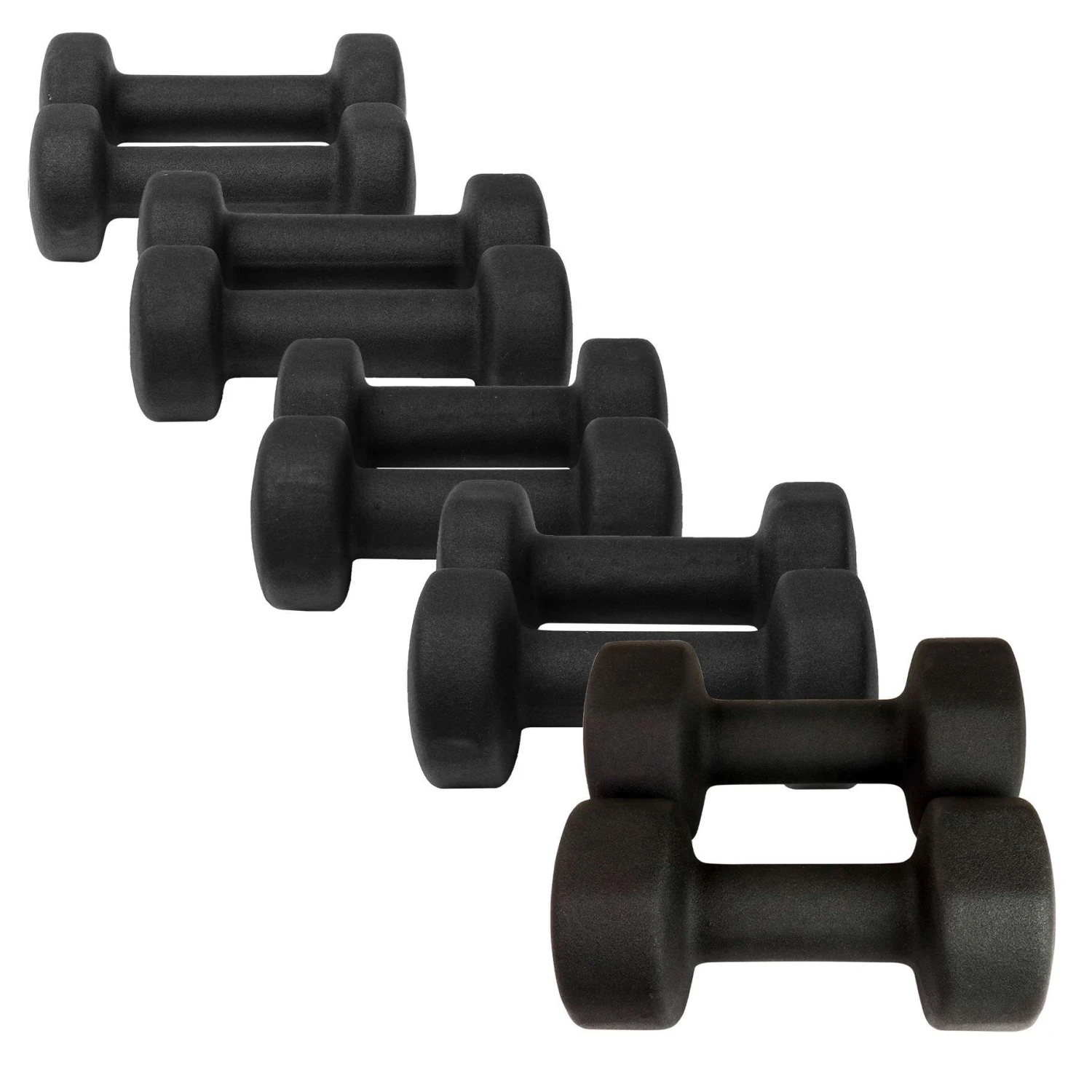 Dumbbells from 1 to 8kg, for a variety of exercises and strength levels. These Black Dumbbells are also the same sizes as our Colourful Neoprene Dumbbells, so you can mix and match. With a soft grip touch they won’t cut into your palms but you also won’t loose the grip as you sweat it out. Plus, the flat bottoms prevent these weights from rolling away! Sold as pairs and perfect for your home gym or a commercial studio.