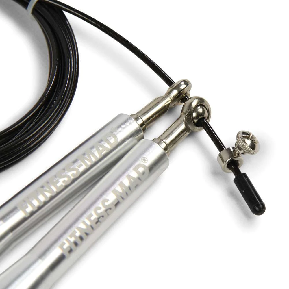Need a speed rope which can keep up with you? The Fitness-Mad Ultra Speed Rope is fast, tangle-proof, and intelligently designed with a metal bearing, smooth-turning system to never slow you down. Ideal for CrossFit, Double Unders, HIIT, Cardio, MMA, and Boxing training for boosting speed, agility, and co-ordination. The attractive knurling pattern on the handle is also practical, helping to prevent the handles sliding from your grip as you get the sweatiest of workouts. Quickly adjust the length of the rope to suit the user height with the quick-adjust system for a lightening fast skipping experience.