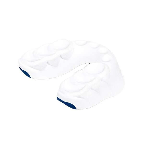 The lower rubber frame, absorbs the shock when you bite and diffuses it in the direction of your strongest teeth.